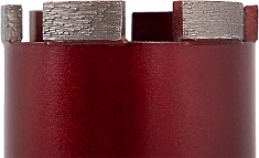 - Лазерная сварка: изготовлена с применением лазерной сварки алмазных сегментов к корпусу коронки, что обеспечивает прочное соединение и практически исключает отрыв сегмента в процессе работы. Коронки с лазерной сваркой сегментов возможно использовать без водяного охлаждения