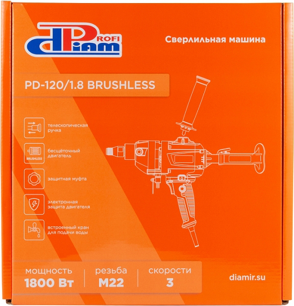 Цена и технические характеристики бесщеточной дрели для алмазного сверления ProfiDiam PD-120/1.8 Brushless: