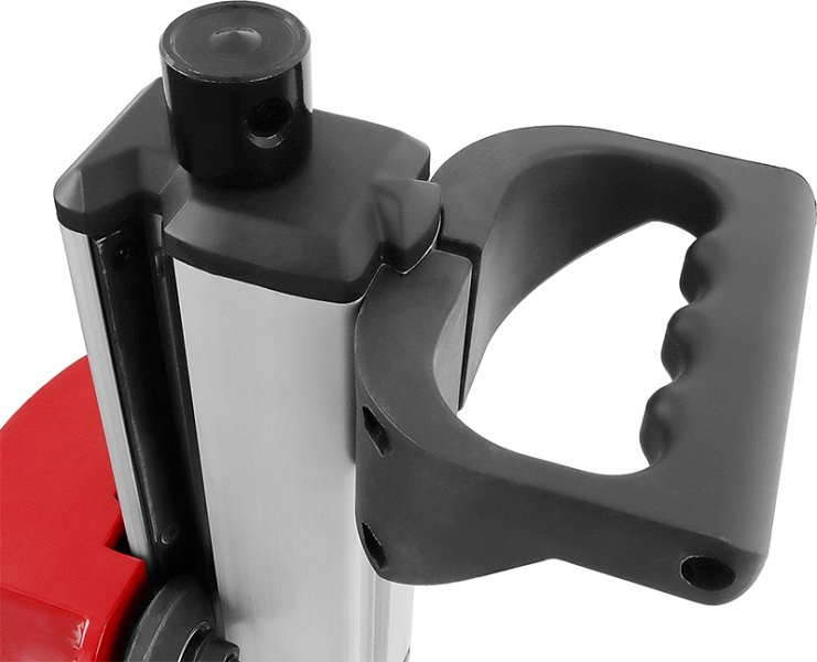 - Двухскоростной редуктор каретки: каретка имеет двухскоростной редуктор подачи алмазной коронки, что позволяет производить бурение разных материалов